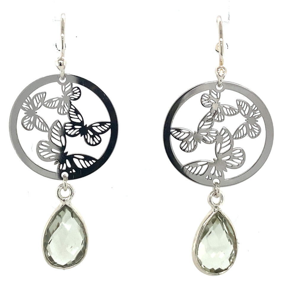 Zilveren oorhaken vlinders met Citrien