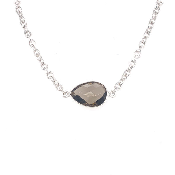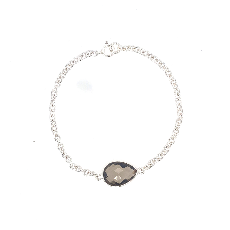 Zilveren schakel armband met Rookkwarts