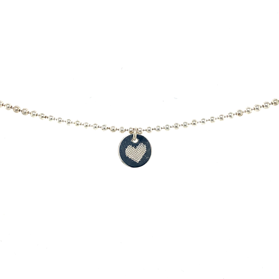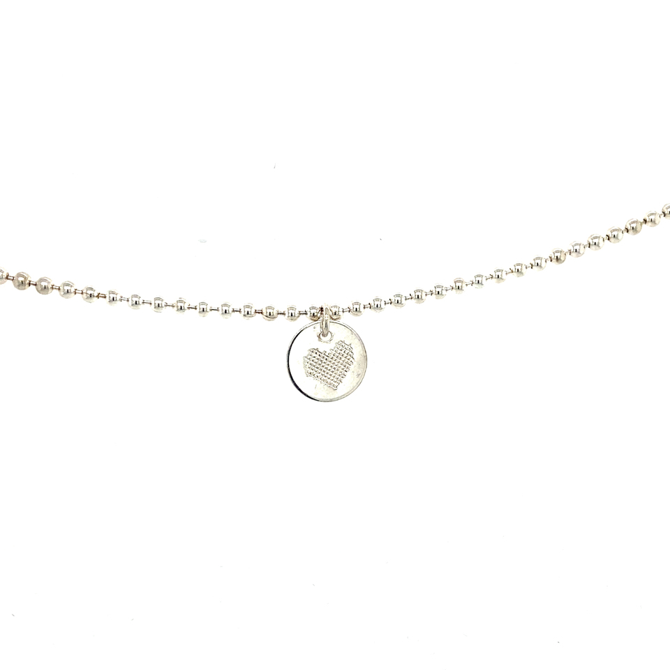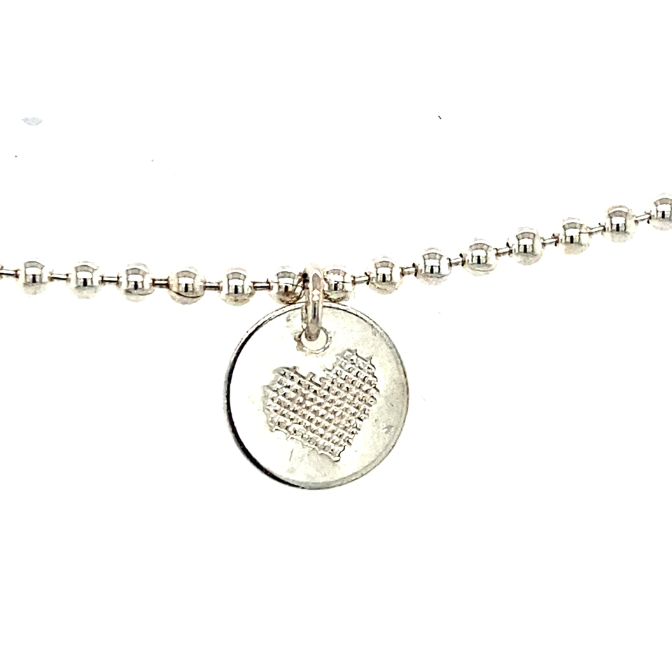 Zilveren armband met rond plaatje afbeelding wafel hart